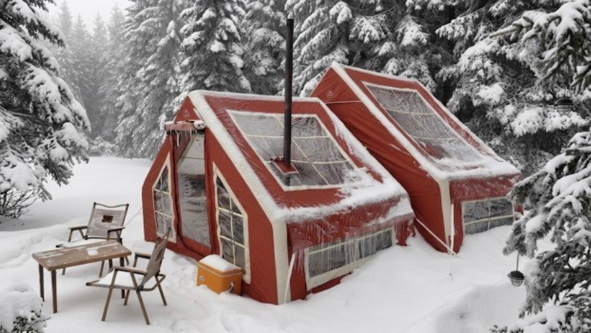 Кемпинг в сильную снежную бурю с нашей новой палаткой.
