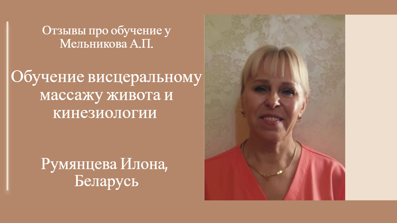 Обучение висцеральному массажу и кинезиологии у Мельникова А.П. Отзыв Румянцевой Илоны, Беларусь,