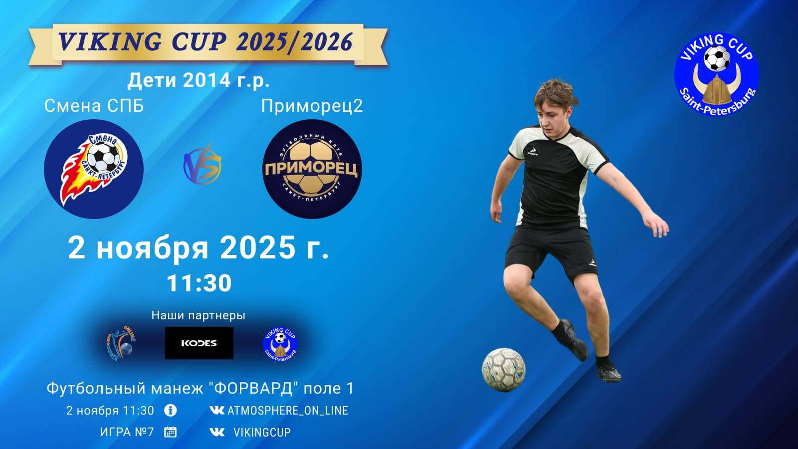 VIKING CUP среди команд 2014 г.р. (U11), Поле 1 2 ноября 2025 САНКТ-ПЕТЕРБУРГ, ФЦ "Форвард" ФК "СменаСПБ" - ФК "Приморец2"/VIKING CUP, Игра №7, 02-11-2025 11:30