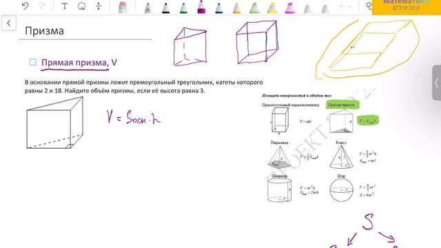 ЕГЭ математика БАЗА 2026. Задание 13. Объем прямой призмы.