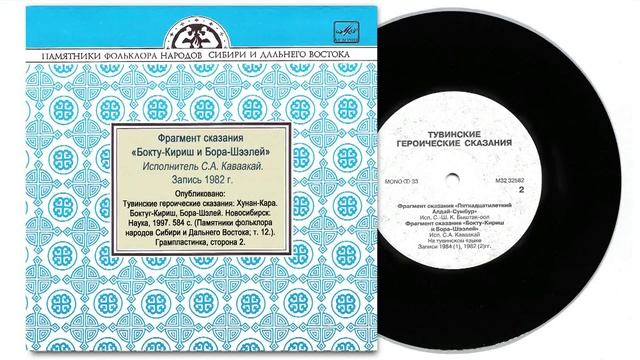 Фрагмент сказания «Бокту-Кириш и Бора-Шээлей». Исполнитель С.А. Каваакай. Запись 1982 г. Опубликовано: Тувинские героические сказания: Хунан-Кара. Боктуг-Кириш, Бора-Шэлей. Новосибирск: Наука, 1997. 584 с. (Памятники фольклора народов Сибири и Дальнего Востока; т. 12). Грампластинка, сторона 2.