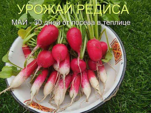 Первый урожай редиса. Редис в теплице 30 дней от посева- 9 мая урожай.