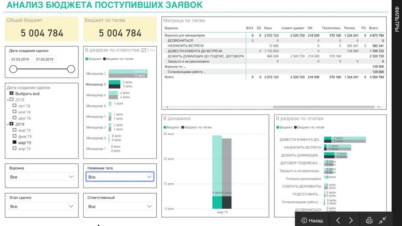 Интеграция AmoCRM с PowerBI и построение отчетов для анализа продаж и эффективности работы менеджеров. Для заказа такого отчета пишите на +79277915464 (whatsapp, telegram) или на почту info@cifra-online.ru Больше наших работ на сайте http://cifra-online.ru