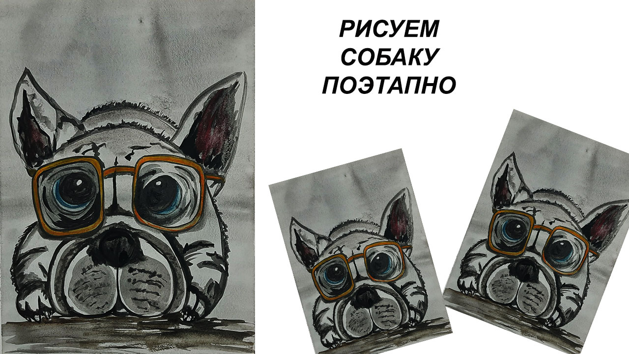 Как нарисовать собаку акварелью. Нарисуем французского бульдога.