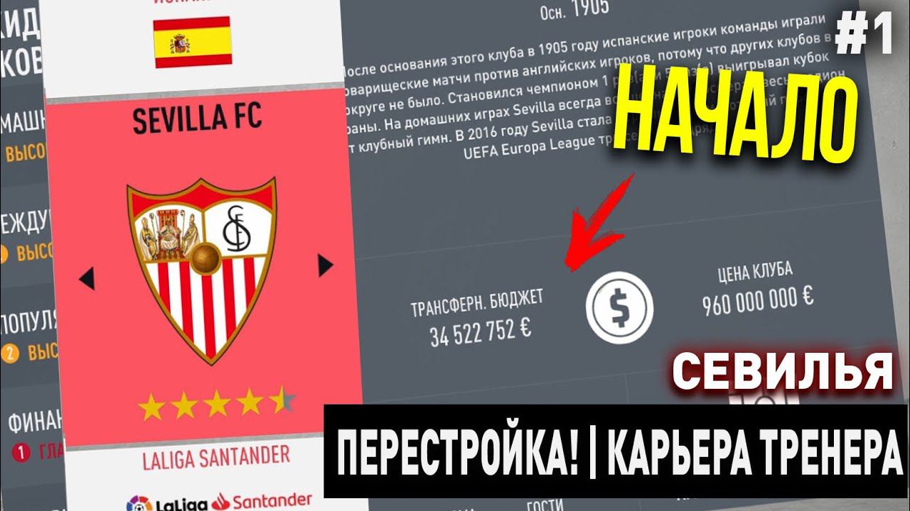 ПЕРЕСТРОЙКА | СЕВИЛЬЯ | FIFA 20 | КАРЬЕРА ТРЕНЕРА | ЧАСТЬ 1