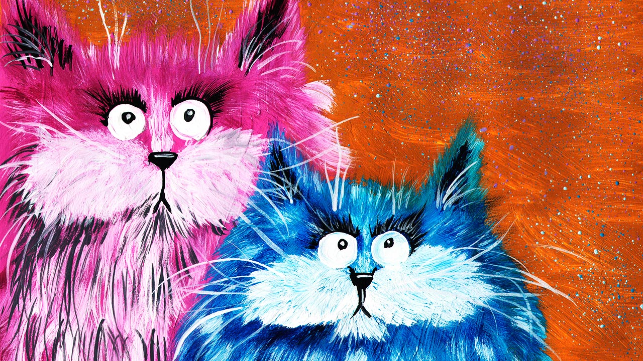 Как нарисовать интерьерную картину в детскую. Рисуем котиков. Рисуем яркую картину.