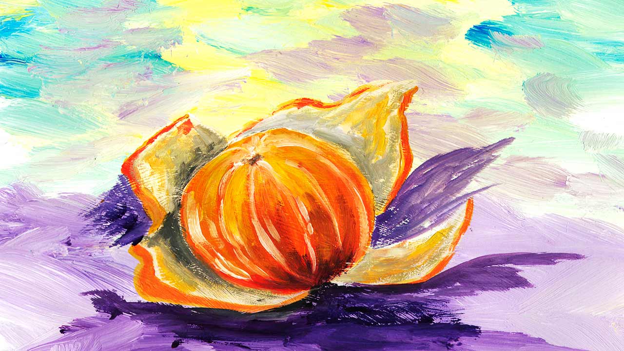 Нарисуем мандарин гуашью. Рисуем фрукты легко. Как нарисовать натюрморт.