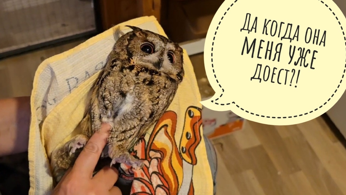 Маша приехала в отпуск, теперь видео будут сниматься с другого ракурса! Маша снимала, как я даю новым совам лекарства. Сама я так снять не смогла бы. Утром Одуванчик легче принимает всё, что я ему даю, а вечером его тошнит. Нужно долго сидеть и наблюдать, потому что, если сову стошнит лекарствами, надо давать всё снова. От T-RexFood приехала свежая саранча, - любимая еда домовых сычей и сов сплюшек. Я решила попробовать показать насекомых новым совам. Эти совы никогда не видели ничего подобного.