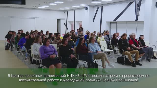 В Центре проектных компетенций НИУ «БелГУ» прошла встреча с проректором по воспитательной работе и молодежной политике Еленой Малышкиной. Состоялась презентация проектных решений в рамках подачи заявок на Всероссийский конкурс Росмолодёжь.Гранты. Елена Анатольевна – эксперт в области молодежных инициатив и молодёжной политики. В ходе диалога студенты узнали об аспектах молодежной политики, предложениях от федерального агентства Росмолодежь, смогли представить свою оригинальную проектную идею.