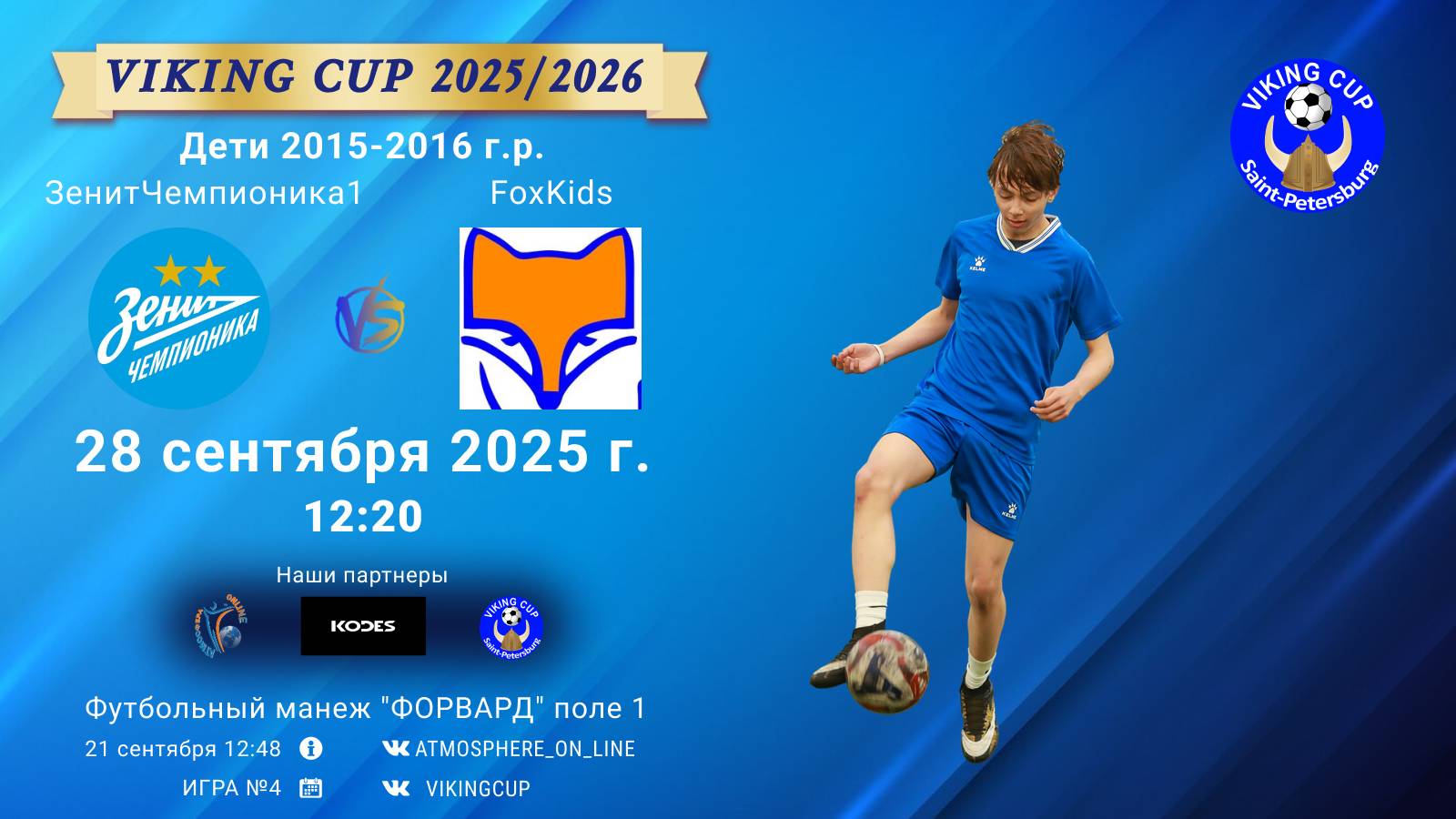 VIKING CUP среди команд 2015-2016 г.р. (U9-U10), Поле 1 28 сентября 2025 САНКТ-ПЕТЕРБУРГ, ФЦ "Форвард" ФК "ЗенитЧемпионика1" - ФК "FoxKids"/VIKING CUP, Игра №4, 28-09-2025 12:20