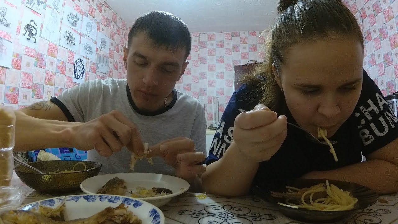 КУШАЕМ СПАГЕТТИ С РЫБОЙ (АНГЕЛИНОЧКА ПРИГОТОВИЛА УЖИН)