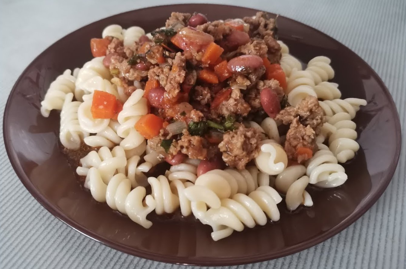 БЫСТРО, ПРОСТО И СЫТНО! Рецепт из фарша с фасолью в томатном соусе! Паста с фаршем и фасолью.