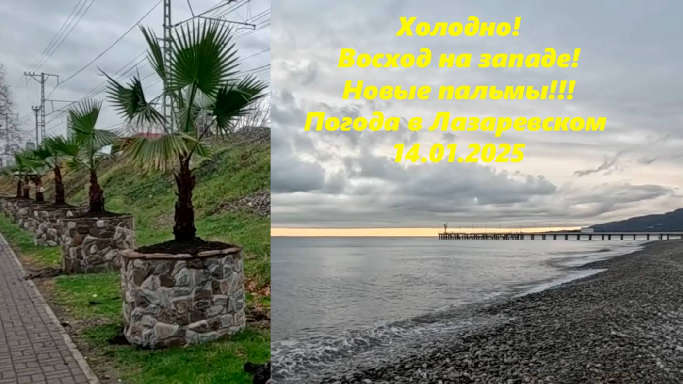 Холодно! Новые пальмы ,а восход теперь на западе! Погода в Лазаревском 14.01.2025.