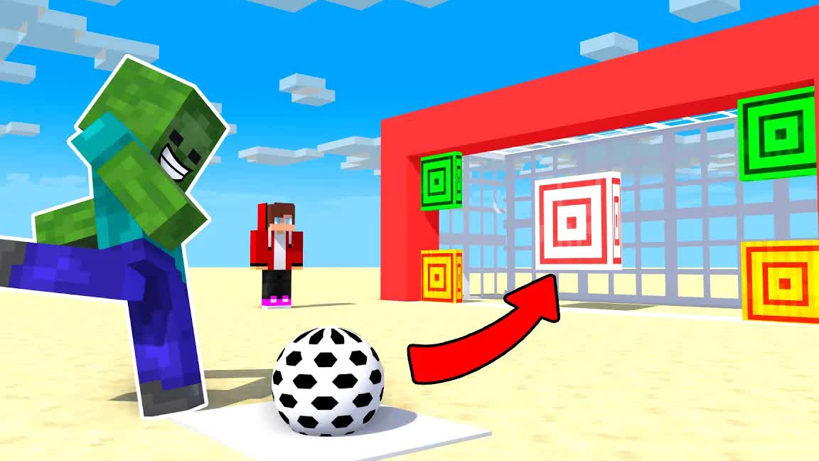 Монстры и герои, Джей Джей и Майки: КТО СИЛЬНЕЕ В СТРЕЛЬБЕ ПО МЯЧУ? Майнкрафт анимация Майзена