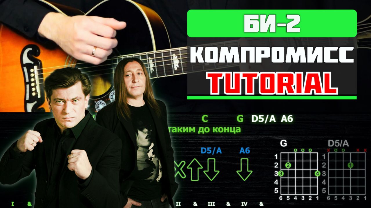 🎸 Би-2 – «Компромисс» на гитаре: БЫСТРЫЙ РАЗБОР с графикой! (Играю от начала до конца) 🖤🎶 СОДЕРЖИТСЯ МАТЕРИАЛ, ПРОИЗВЕДЕННЫЙ И (ИЛИ) РАСПРОСТРАНЕННЫЙ ИНОСТРАННЫМ АГЕНТОМ БОРТНИК ЕГОР (ИГОРЬ) МИХАЙЛОВИЧ "ЛЕВА БИ-2", 18+ 👉 Подробный разбор доступен: 1) На Бусти: https://boosty.to/guitarup/posts/2c59274c-9270-4732-8997-11980d492f68?share=post_link 2) В тг: https://t.me/tribute/app?startapp=s4tO 📄 Табы (GuitarPro): 1) На Бусти: https://boosty.to/guitarup/posts/524b7f2e-0bae-41e6-a237-fca993be0256?share=post_link 2) В тг: https://t.me/tribute/app?startapp=sre5 🎧 Табы + Аудио + Видеотабы: https://boosty.to/guitarup/posts/fd0765e3-6096-42a9-8a10-4ccaece5caf8?share=post_link Сегодня максимально быстро и понятно разбираем один из самых атмосферных хитов Би-2 – «Компромисс»! В этом видео я сыграю песню целиком на акустической гитаре, а на экране — интерактивная графика в реальном времени: схемы аккордов, табы и стрелки направления боя! Никакой воды — только самое нужное, чтобы ты заиграл этот трек уже сегодня. 🎸🔥 🔥 ЧТО ТЕБЯ ЖДЁТ В ЭТОМ РАЗБОРЕ: ✅ Песня целиком — от первых нот до финального аккорда ✅ Интерактивная графика — аккорды, табы и направление ударов правой руки на каждом такте ✅ Красивое соло — разбираем мелодию нота в ноту ✅ Фирменный перебор — тот самый нежный ритм в куплетах ✅ Быстрый формат — без долгих объяснений, только суть ✅ Оригинальная тональность — играем как в оригинале 🎯 ЭТОТ ФОРМАТ ДЛЯ: ✅ Визуалов — кто учится по схемам и табам ✅ Новичков — хочешь быстро выучить красивую песню ✅ Всех, у кого мало времени — 5 минут просмотра, и ты уже играешь ✅ Фанатов Би-2 — чтобы играть с той же атмосферой 👍 Лайк — если хочешь больше быстрых разборов 🔔 Подпишись на GuitarUp — новые видео каждую неделю ♥ ПОДДЕРЖАТЬ КАНАЛ ♥ 👑 Boosty - https://boosty.to/guitarup 👑 Tribute - https://t.me/tribute/app?startapp=s4tO 💵 Сбер: 2202208241343178 👉 Группа Вконтакте: https://vk.com/guitarupyoutube 👉 Телеграм-канал - https://t.me/guitarupytube 👉 КАКАЯ ❗❗❗ГИТАРА❗❗❗ СТРУНЫ и всё моё оборудование тут https://t.me/guitarupytube/126 🕒 Тайминг: 0:00 - Дисклеймер 0:15 - Руководство 0:18 - Аккорды и Текст песни 0:24 - Вступление 0:44 - Куплет №1 1:21 - Предприпев №1 1:38 - Припев №1 1:58 - Проигрыш 2:15 - Куплет №2 2:52 - Предприпев №2 3:09 - Припев №2 3:29 - Проигрыш 3:47 - Переход 3:53 - Модуляция 4:10 - Припев №3 4:30 - Концовка #Би2 #Компромисс #GuitarUp #БыстрыйРазбор #ГитараСГрафикой #Табы #Аккорды #ПереборНаГитаре #ИграемЦеликом #РусскийРок #ОбучениеГитаре ● Текст: - Каподастр на 3 ладу - [Вступление] Em Cmaj7 Cadd9 G D5/A Em Cmaj7 Cadd9 G D5/A [Куплет 1] Em Cmaj7 Cadd9 G Друг дорогой, что ты сделал с собой? D5/A A6 Em C G D5/A A6 Был ху - дой, молодой, ел сердца Em Cmaj7 Cadd9 G Пил и курил, за - жи - гал и гасил D5/A A6 Em C G D5/A A6 Ду - мал, будешь таким до конца [Предприпев] C Bm Em D Оставлен за спиной возраст Христа C/G Bm/F# Em D Обратной стороной повернулась мечта [Припев] Em Лежит на струнах пыль G D Ржавеет под окном разбитый телевизор Em Ты сгладил все углы G D И жизнь твоя сплошной проклятый компромисс D5 Ни вверх, ни вниз [Проигрыш] C Am Em Esus4 Em C Am Em D5 [Куплет 2] Em Cmaj7 Cadd9 G Друг дорогой, как ты ладишь с тоской? D5/A A6 Em C G D5/A A6 Вы - би - раешь запой или спорт Em Cmaj7 Cadd9 G Может, рискнёшь, ста - ри - ною тряхнёшь D5/A A6 Em C G D5/A A6 На - по - следок возьмёшь свой аккорд [Предприпев] C Bm Em D Оставлен за спиной возраст Христа C/G Bm/F# Em D Обратной стороной повернулась мечта [Припев] [Проигрыш] C Am Em Esus4 Em C Am Em D5 [Переход] С C(add#11) С С6 A5 A6 A7 A6 - Переставляем каподастр на 4 лад - [Модуляция] С Am Em Em/F# G C Am Bm Em D5 [Припев] [Концовка] С Am Em Em/F# G C Am Bm Em Em/F# Em/G D5