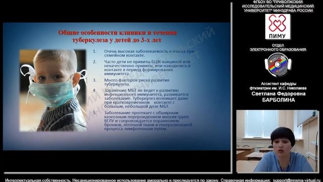 Лекция ассистента кафедры фтизиатрии им. И.С. Николаева ФГБОУ ВО «ПИМУ» Минздрава России, врача-фтизиатра Барболиной Светланы Фёдоровны.