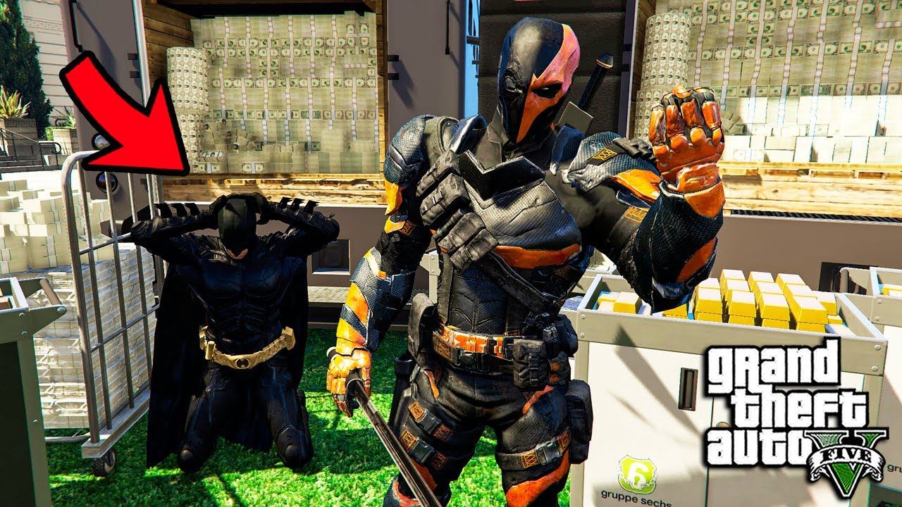 ДЕФСТРОУК ОГРАБИЛ БАНК И ВСТРЕТИЛ БЭТМЕНА ГТА 5 МОДЫ ОБЗОР МОДА GTA 5 ИГРЫ ВИДЕО MODS