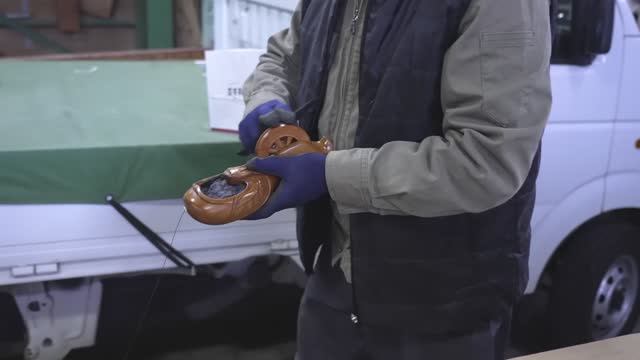 Процесс изготовления резной чернильницы из дерева для отбивочного шнура.