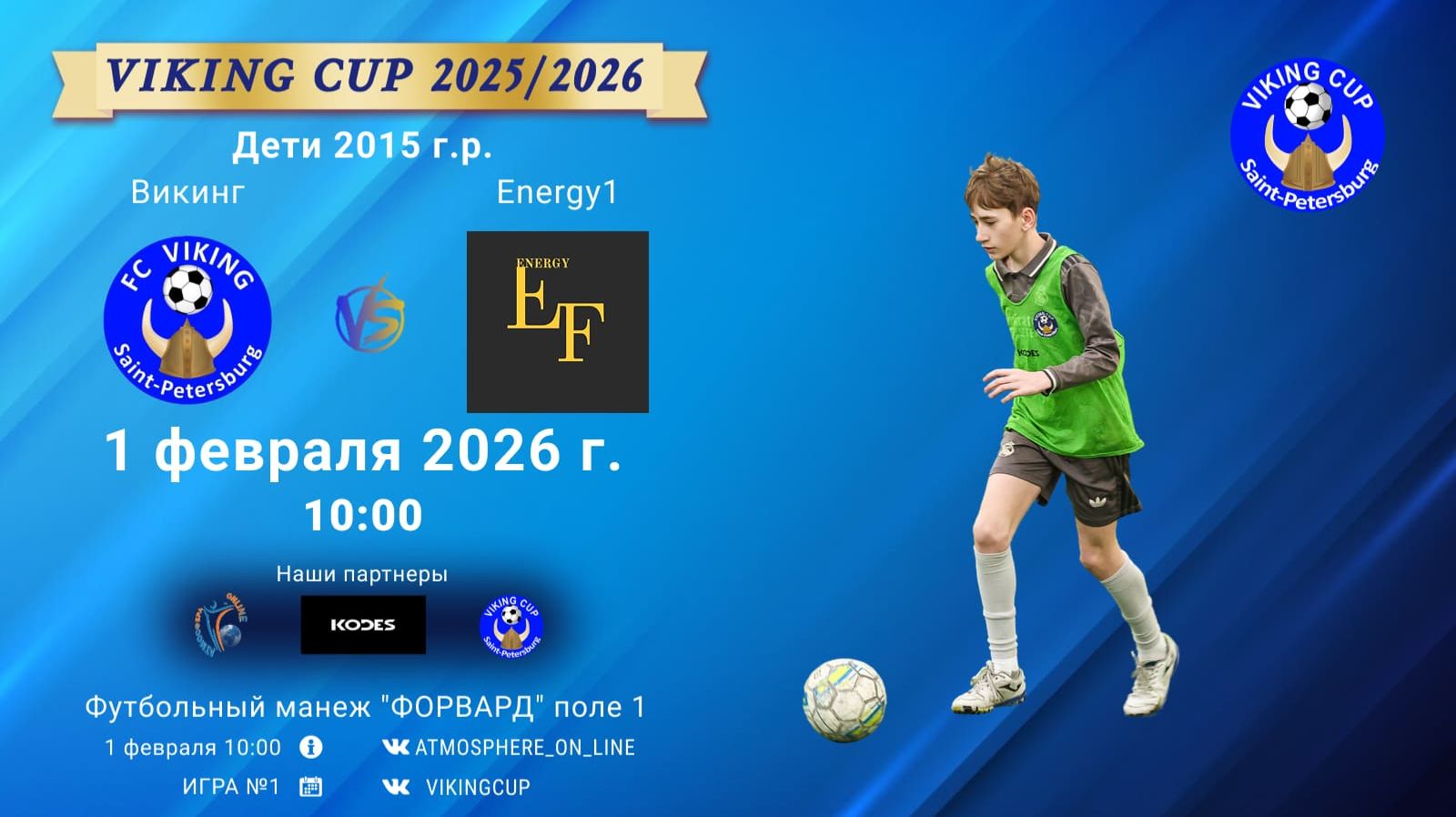 VIKING CUP среди команд 2015 г.р. (U11), Поле 1 1 февраля 2026 САНКТ-ПЕТЕРБУРГ, ФЦ "Форвард" Викинг-Energy1/VIKING CUP, Игра №1, 01-02-2026 10:00