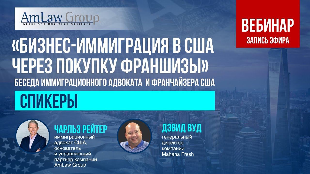 Теперь вы можете минимизировать заботы по оформлению бизнес-визы и получить управление своим американским бизнесом под ключ! Вам не придётся тратить время и силы на создание, становление, управление своей новой американской компанией. Мы предлагаем начать бизнес, который потребует от вас минимальных забот и издержек, но одновременно позволит получать стабильный регулярный доход. Это покупка франшизы в США с пассивным управлением! О подробностях данного уникального предложения вы сможете узнать из данного видео с нашего вебинара, состоявшегося 25 августа. Чарльз Рейтер рассказывает о нюансах получения виз Е-2, L-1, ЕВ-5, а его гость Дэвид Вуд — о франчайзинговой компании Mahana Fresh и возможностях пассивного управления при покупке данной франшизы. Обращайтесь к нам для получения полной версии вебинара (контакты ниже). Участники вебинара: ЧАРЛЬЗ РЕЙТЕР – иммиграционный адвокат США (стаж более 20 лет), основатель и управляющий партнер компании AmLaw Group. Компания уже более 12 лет специализируется на бизнес-иммиграции и имеет превосходную статистику одобрения петиций: 98% наших петиций на грин-карту одобряются Службой иммиграции США; ДЭВИД ВУД – генеральный директор франчайзинговой компании Mahana Fresh, один из лучших франчайзи Dominos Pizza в Соединенных Штатах. Он основал Mahana Fresh как здоровую альтернативу ресторанам быстрого питания. У сети есть представительства более чем в 5 штатах, и в этом году планируется открытие более 10 новых точек, одна из которых вполне может стать вашей. Если Вас заинтересовал проект Mahana Fresh и Вы хотели бы получить больше информации о проекте, условиях сотрудничества и прочих интересующих вопросах, заполните анкету по ссылке https://forms.gle/n9DEBthrGSc2iXgf9 Наш специалист свяжется с Вами, чтобы обсудить все детали и дальнейшие действия. Телефоны: +1 (305) 509-6400 (США) +7 (499) 490-21-37 (Россия) +7 (950) 335-91-31 (WhatsApp, Telegram) E-mail: info@advokat-usa.ru Сайт: https://advokat-usa.ru Facebook: https://www.facebook.com/AmLawEB5 Instagram: https://www.instagram.com/amlawgroup Telegram: https://t.me/Immigration_to_US Наш офис в Майами: 1920 Е Hallandale Beach Suite 709 Hallandale Beach, FL 33009
