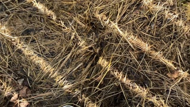 На освободившуюся грядку уложила слой мульчи из травы. Под травой появилась сенная палочка, которая будет в дальнейшем служить защитой растений от различных заболеваний, подавляя в почве патогены.