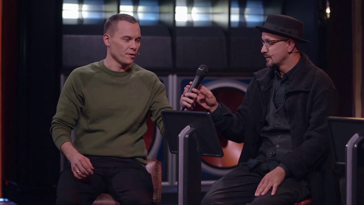 Самый громкий музыкальный эксперимент в шоу Студия Союз. Ирина Мягкова и Егор Дружинин столкнутся в битве в музыкальном караоке. Они должны будут петь песню и одновременно пройти полосу препятствий, управляя лишь громкостью своего голоса. Гостям достанется песня Рок Острова - "Ничего не говори".