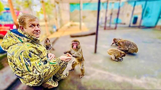 Олег Зубков пришел проведать обезьянку Лизу, даже ГРОЗНЫЙ ВОЖАК подошел за угощением к Человеку-льву