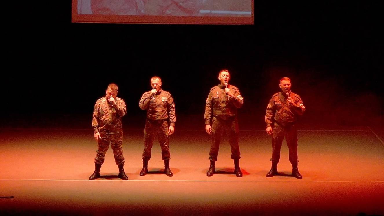 Группа «123 полк» собрала в себе военнослужащих, принимавших участие в боевых действиях на Донбассе. Название выбрано неслучайно − солисты Луганской филармонии, вошедшие в эту группу, служили в 123 стрелковом полку Народной милиции во время Специальной Военной Операции. Участники коллектива «123 полк», простые рядовые пехотинцы, прошли через огонь и воду. С участием в освобождении Мариуполя и наградами за отвагу на поле боя, они продолжают свой боевой дух на сцене, под руководством Ивана Коломойцева (продюсер и директор группы). Группа «123 полк» впечатляет своим разнообразным репертуаром, но если выбирать визитную карточку, то, безусловно, это композиция «Наши голоса».