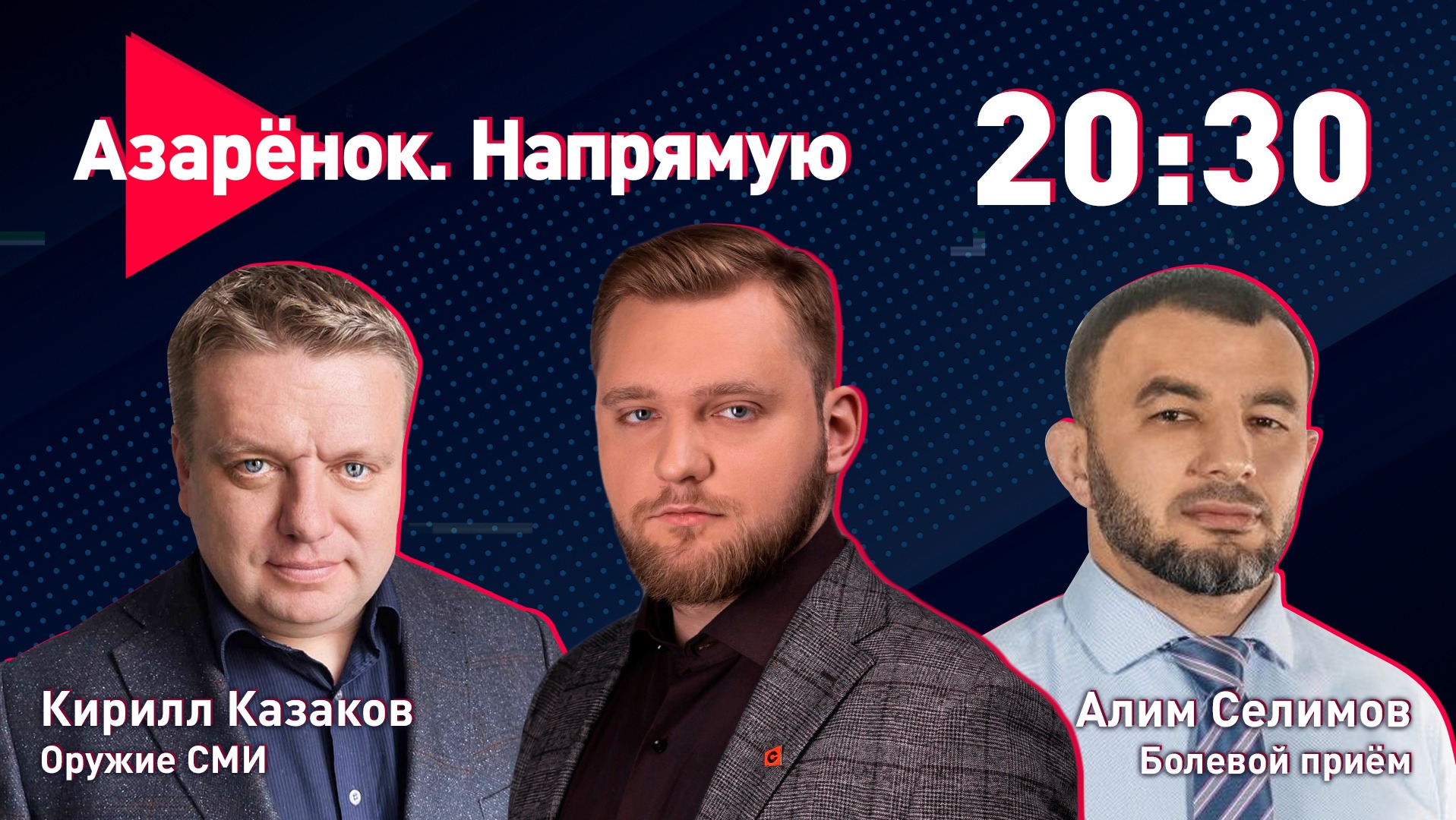3 августа в 20:30. Проект «Азарёнок. Напрямую». О важном в прямом эфире. Вместе с экспертами обсудим оружие СМИ, журналистику, болевые приёмы для наших недругов. В гостях заместитель генерального директора Агентства «Минск-Новости» – главный редактор газеты «Минский курьер» Кирилл Казаков и председатель Белорусской федерации борьбы Алим Селимов.