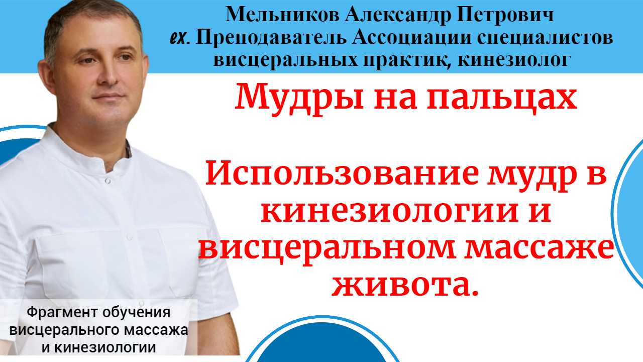 Мудры на пальцах: Если сложить большой и указательный палец и кинезиологический тест будет менять свое значение с плюса на минус или наоборот, это будет говорить о том, что страдает структура у человека. Если сложить средний и большой палец и кинезиологический тест будет менять свое значение с плюса на минус или наоборот, это будет говорить о биохимической проблеме Если сложить безымянный и большой палец и кинезиологический тест будет менять свое значение с плюса на минус или наоборот, это будет говорить о психоэмоциональной проблеме, или проблема с диафрагмами тела Если сложить мизинец и большой палец и кинезиологический тест будет менять свое значение с плюса на минус или наоборот, это будет говорить о канально-меридианной дисфункции (энергетика). Каждая из перечисленных выше проблем в равной доле может быть первичной. Смотрите подробнее в видео про то, что такое патологическое кольцо, как стать хорошим специалистом по висцеральной терапии, оздоровление народными методами по методу Огулова А.Т., прикладную кинезиологию и многое другое! ✅ ЗАРЕГИСТРИРОВАТЬСЯ НА КУРСЫ ОБУЧЕНИЯ ПРИКЛАДНОЙ КИНЕЗИОЛОГИИ И МАССАЖУ ВНУТРЕННИХ ОРГАНОВ (ЖИВОТА) СЕЙЧАС ПО ССЫЛКЕ https://ruszdrava.ru ✅ Связаться с администратором курсов и задать вопросы: +79222160707 ✅Познакомьтесь с кинезиологией и массажем живота бесплатно! Узнать больше про работу с внутренними органами Вы сможете на вебинаре! https://ruszdrava.ru/ Лечение правильным висцеральным массажем живота и кинезиологией, медовым, антицеллюлитным массажем живота и боков и вакуумными банками в Екатеринбурге для похудения, при остеохондрозе, запоре, простатите, проблемах желчного пузыря и многих других недугах. На сеансе Вы можете получить уроки обучения методу “Висцеральный массаж живота руками” как по Огулову А.Т. , так и по методикам других экспертов висцерального массажа живота - для обучения самостоятельно с нуля. Предоставляем в регионе услуги висцерального массажа живота с 2005 года, 14 лет официальной работы как представительства Академии висцерального массажа живота проф. Огулова А.Т. : услуги и обучение. Не откладывайте “на потом”, становитесь здоровым сейчас ! Записывайтесь на консультацию в Екатеринбурге +79222095238. Сайт о наших услугах http://prozdorovie.pro ✅ Присоединиться к чату живого общения по оздоровлению в Телеграм: https://t.me/VisceralHealth ✅ Присоединиться в инстаграм: https://www.instagram.com/vladimir_seryodkin_prozdorovie/ ✅ Больше информации www.prozdorovie.pro ✅ Присоединяйтесь к нашей группе в ВК: https://vk.com/prozdorovie_pro ✅ Присоединяйтесь к нашему ютуб каналу: https://www.youtube.com/channel/UCYejUQ6KfkvOOyBm14uJVkw
