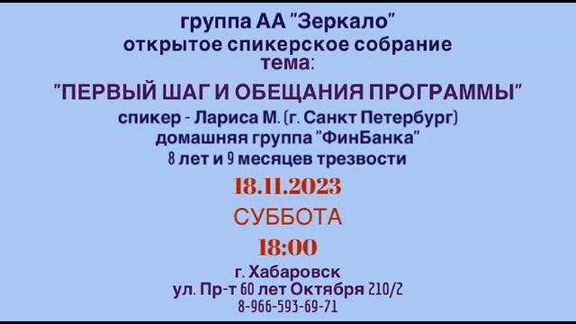 Лариса М. 8 лет и 5 месяцев трезвости. Домашняя группа «ФинБанка» г.Санкт-Петербург