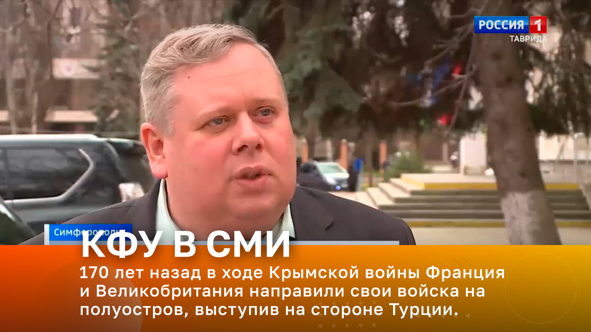 Телеканал «Россия 1. Таврида». В эфире – профессор кафедры истории России КФУ им. В.И. Вернадского Андрей Ишин/ Тема эфира – 170 лет назад в ходе Крымской войны Франция и Великобритания направили свои войска на полуостров, выступив на стороне Турции.