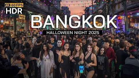 Всем хорошего настроения и позитивных эмоций. Ночная прогулка 🎃 Хеллоуин в Бангкоке 2025 на улице Кхао Сан. 🇹🇭 4K HDR | Night Walk 🎃 Bangkok Halloween 2025 at Khao San Road.