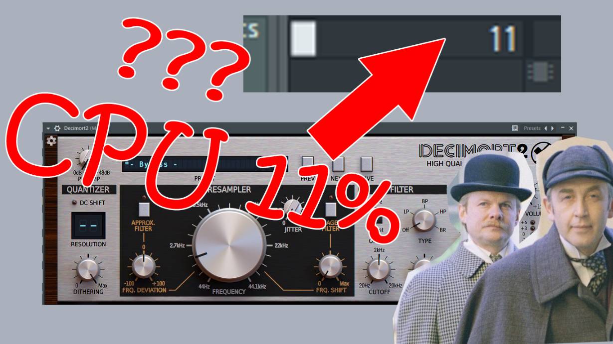 Снижение семпл рейта(частоты дискретизации) это эффект в синтезе и звукорежиссуре при котором намеренного снижения качества аудио за счёт снижения количества точке которые, обрисовывают волну по горизонтали. Тмакое снижение формального качества, может создавать как художественные эффекты, так и может добавлять определенные тембры и характер звукам. То есть как бы породоксально это не звучало, в некоторых случаях снижение цифрового качества звука может удушать качество слышимого звука. Но это такой именно художественный эффект, для ряда ситуаций и для некоторых инструметов. При сильном понижении семплрейта могут быть созданные некоторые звуковые спец эффекты. Короче суть тут в понижении качества звука. Но вот по какой-то причине относительно простой и не требовательный эффект понижения частоты дискретизации в плагине Decimort 2 потребляет какое-то неадекватное количество ресурсов процессора. Это всё равно что как бут то бы у вас на компьютере 8бит Деньдивская игра бы вам как следует нагружала процессор. Короче мне удалось путём экспериментов выяснить почему тут такая высокая нагрузка на процессор. Спойлер: разработчики туда затолкали оверсемплнг 16х, который нельзя ещё при этом отключить. Теги: #звукорежиссура, #семплрейт, #дискретизация, #частота, #процессор, #звук, #волна, #нагрузка, #процессор, #требования, #качество, #параметры, #скрытые, #плагин, #ВСТ, #эксперимент, #Проверка, #доказательства, #сравнение, #sound-engineering, #sample-rate, #sampling, #frequency, #processor, #sound, #wave, #load, #processor, #requirements, #quality, #parameters, #hidden, #plugin, #VST, #experiment, #verification, #proofs, #comparison,