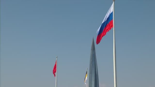 Владимир Путин с катера наблюдал за поднятием в Петербурге флагов России, СССР и Российской империи