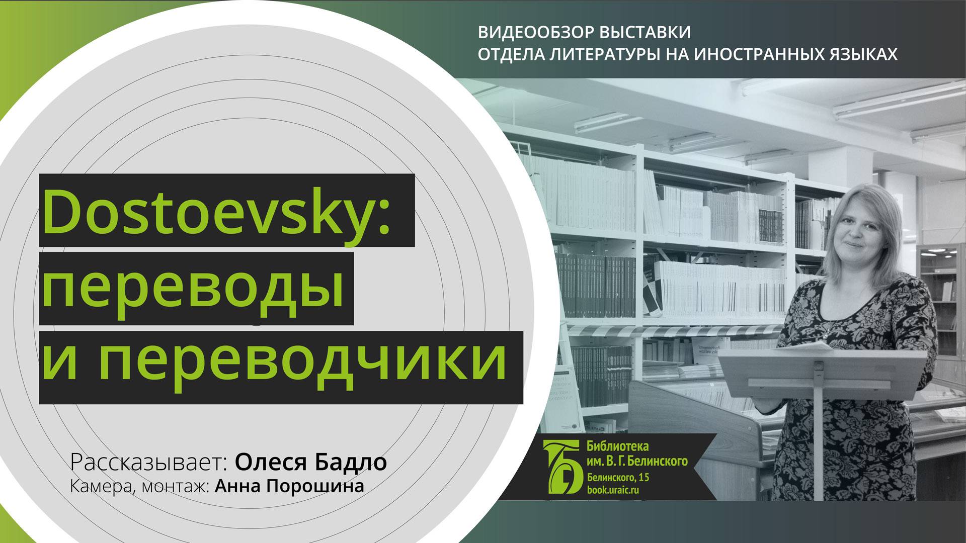 18 нояб. 2021 г. Обзор выставки отдела литературы на иностранных языках к 200-летнему юбилею писателя. Куратор выставки Олеся Бадло рассказывает о переводах и переводчиках Достоевского на английский язык. Из обзора вы узнаете, кто создал так называемый «русский стиль» в Великобритании, чьи переводы пользуются популярностью в США, а также кто продолжает переводить Достоевского сегодня. Камера, монтаж: Анна Порошина. Свердловская областная универсальная научная библиотека им. Белинского http://book.uraic.ru/ сайт https://vk.com/club6745014 VK