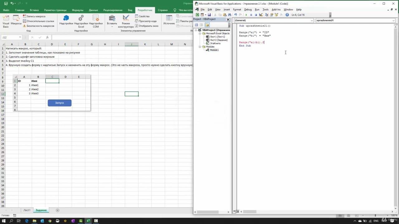Упражнение 3.1 Решение. Свойства диапазона. Программирование макросов в Excel.