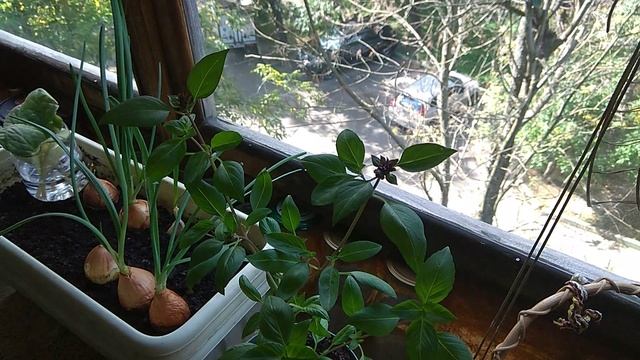 На моём балконе вырос базилик и смородина.(06.09.2023.)