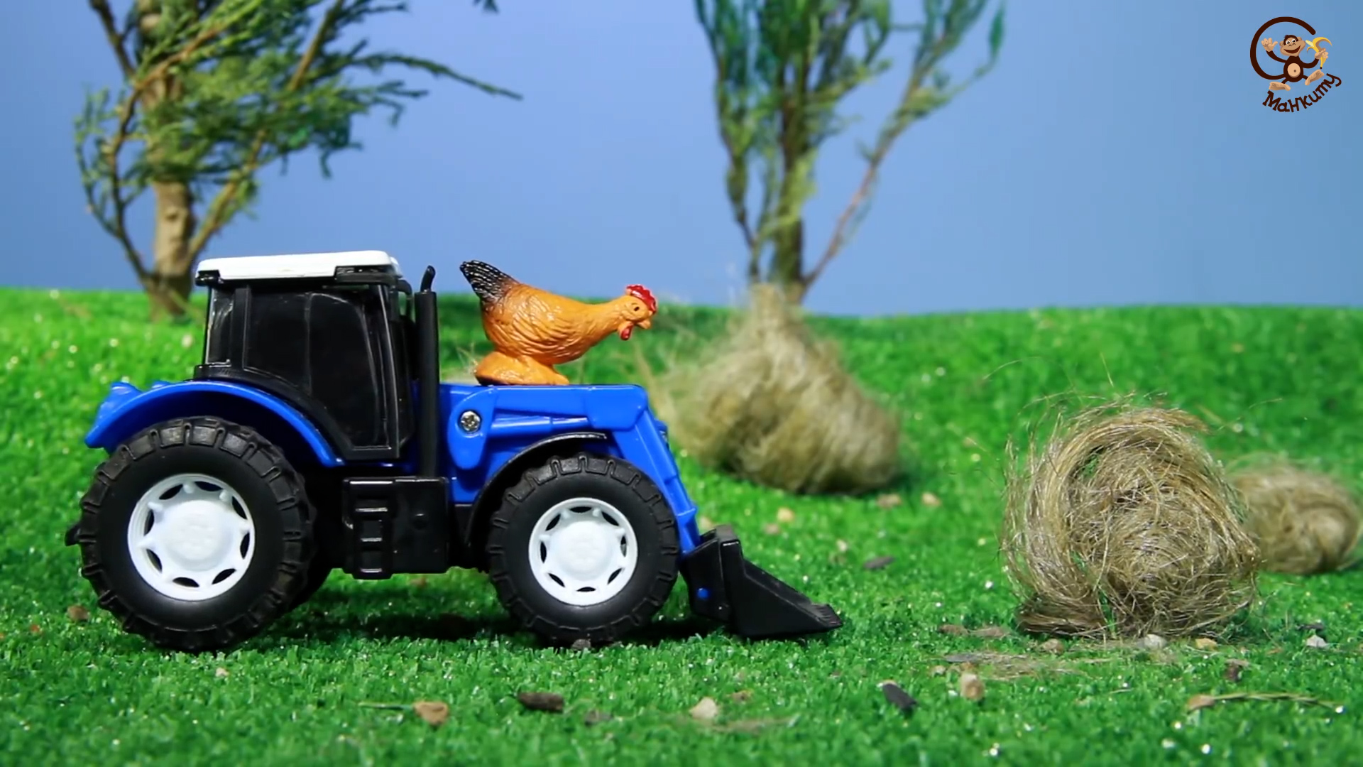 Мультик про Машинки - Динозавр, Трактор, Пожарная машина и Курочка. МанкиМульт