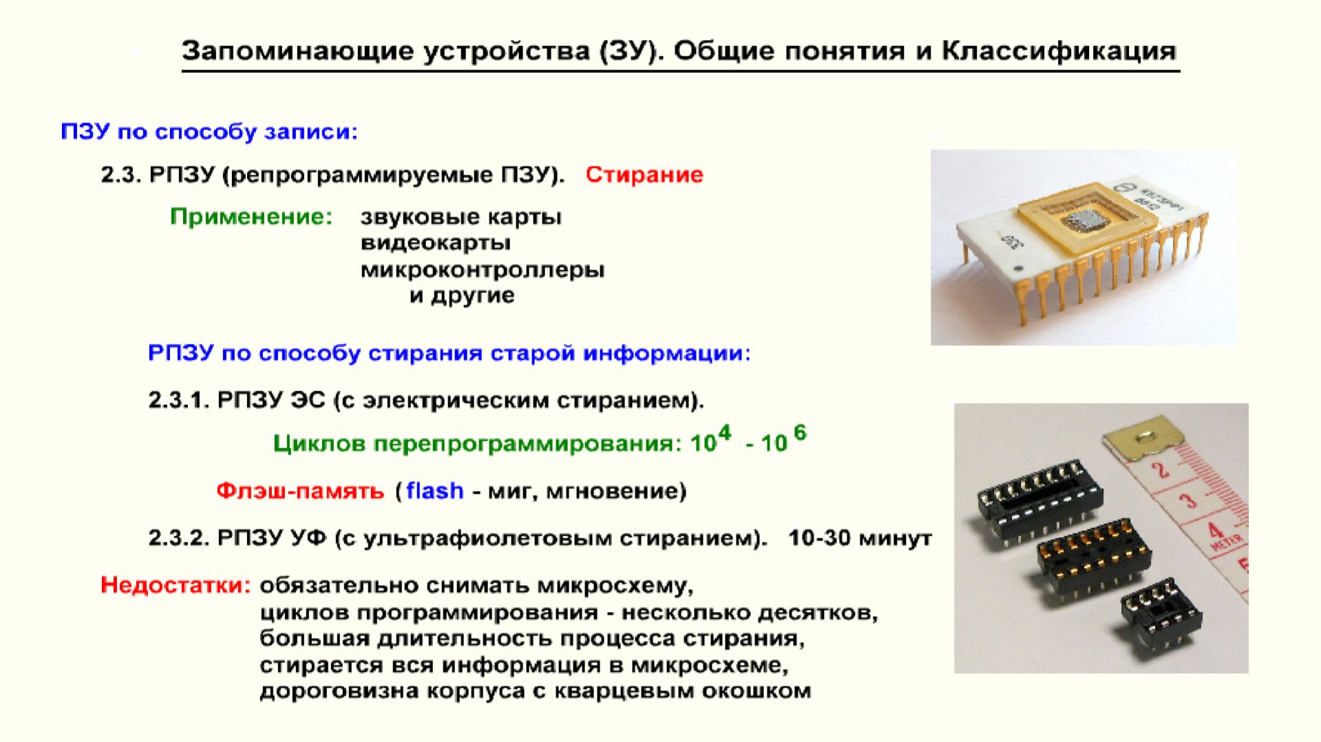 Постоянные запоминающие устройства (ПЗУ).