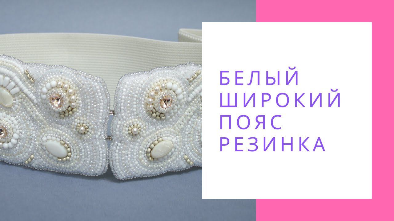 Белый широкий пояс резинка вышитый бисером перламутром и Swarovski NataliaLuzik