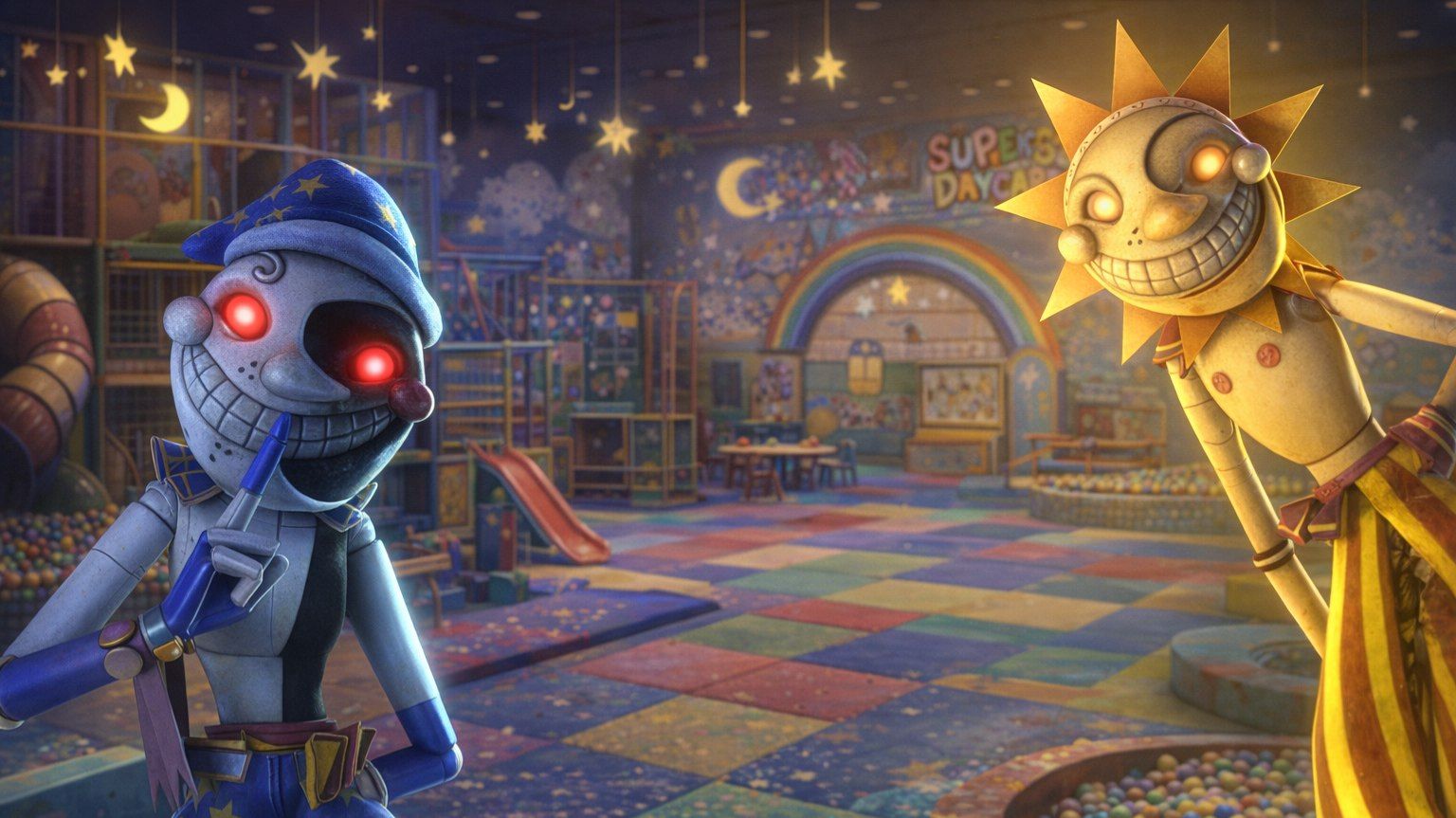 встреча с Луной и Солнцем в FNAF sequrity breach