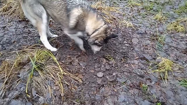 Забавные животные. Сибирская хаски Умка отличный землерой.
