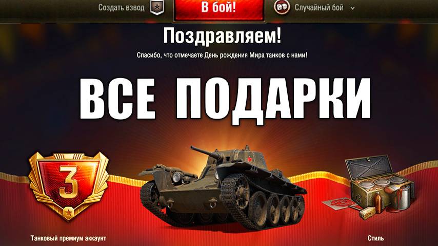 Прем Танк в подарок всем ЗА ВХОД в Игру! Новые Бонусы на Праздник! День Рождения и новости!