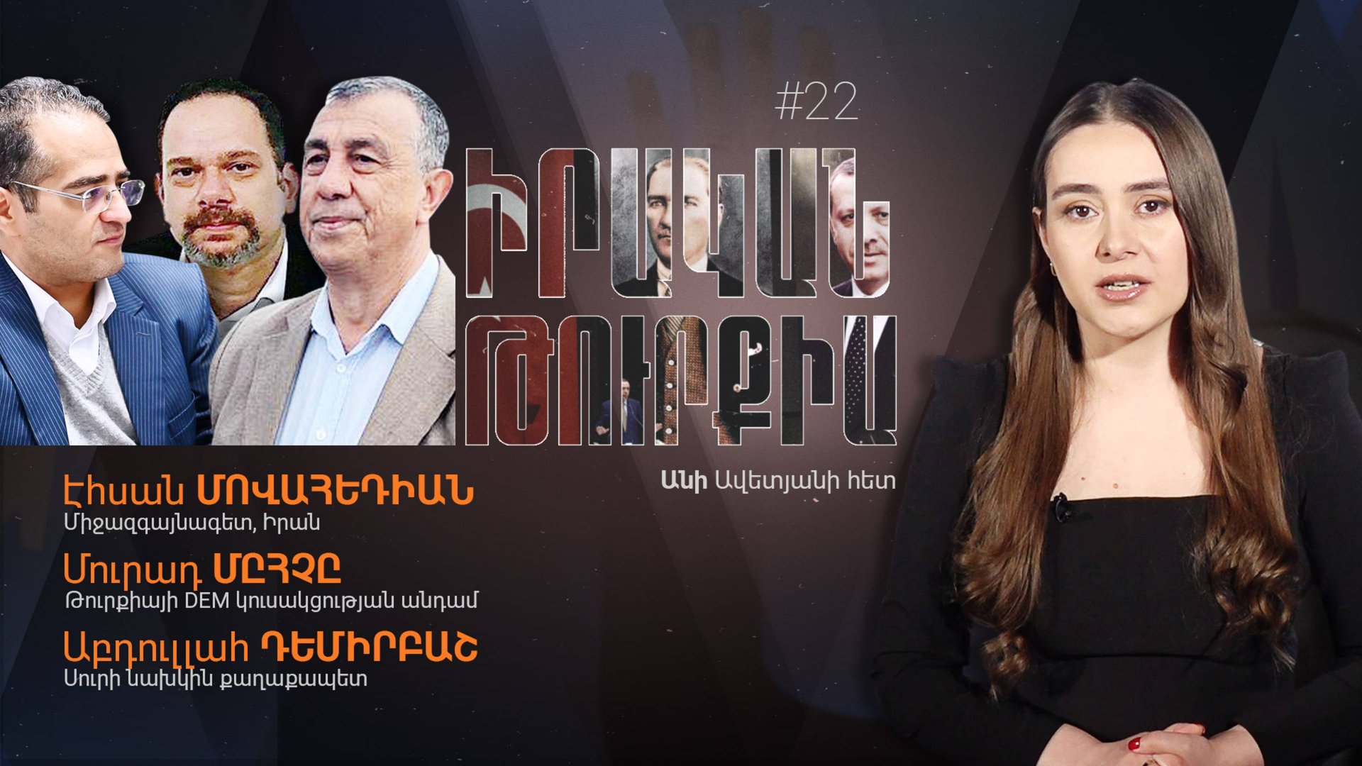 Авторская передача Ани Аветян «Реальная Турция» на Alpha News поднимает множество насущных вопросов, созревших в регионе и Армении. Смотрите в этом выпуске: 🔹 Государственное информационное агентство Турции одно за другим представляет заявления Пашиняна, которые исходят из интересов Турции 🔹 Пока Геноцид армян в Ереване объявлен вне приоритетов, Турция и Азербайджан обвиняют Армению в совершении геноцида 🔹 Новые подробности вокруг коридора через территорию Армении из общения министра Турции и замминистра Армении 🔹 Какую цену заплатит Армения за открытие армяно֊турецкой границы? 🔹 Провал турецкой дипломатии: Фидан предлагает посредничество между Москвой и Вашингтоном 🔹 Лавров отказывает главе МИД Турции и, стоя рядом с Фиданом объясняет, кому принадлежит Крым ♦️ Подведение итогов: 🔹 Эхсан Мохаведиан: «Турция и Баку планируют оккупировать Сюник, изолировав Армению и Иран» 🔹 Абдулла Демирбаш: «Турция представляет свое существование только путем уничтожения армян и курдов» 🔹 Мурад Мыхыч: «Процесс между Пашиняном и Эрдоганом начался неправильно» Подробности в видео
