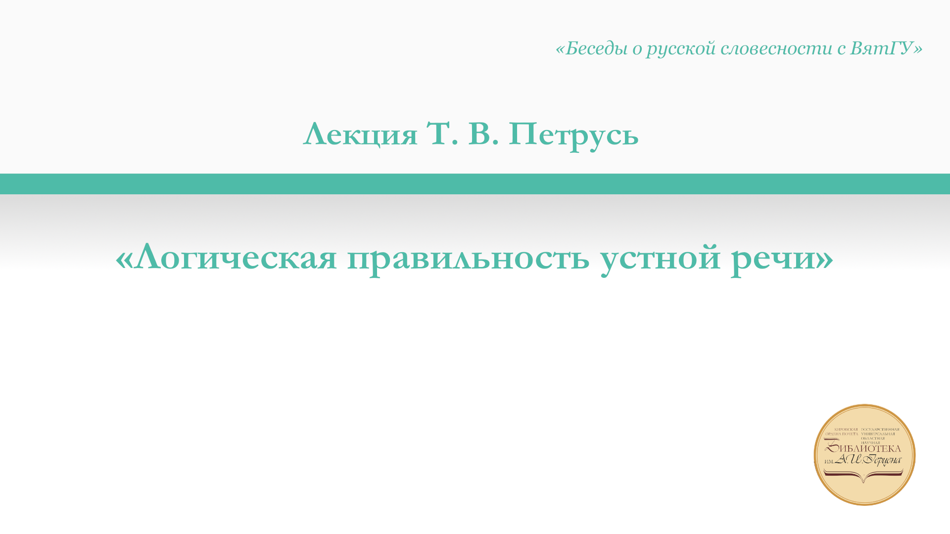 22 марта в Литературной гостиной состоялась лекция кандидата филологических наук, доцента кафедры русского языка, культуры речи и методики обучения Вятского государственного университета Татьяны Владимировны Петрусь «Логическая правильность устной речи» из цикла «Беседы о русской словесности с ВятГУ». Татьяна Владимировна назвала факторы, от которых зависит эффективность нашей бытовой и профессиональной речи: умение выразить свою мысль точно, логично и понятно, убедительная аргументация, владение технической стороной речи, т. е. дикцией, голосом, речевым дыханием. С помощью заранее подготовленного раздаточного материала она познакомила слушателей с определёнными и доступными каждому из нас правилами логики речи, в основу которых положены основы русской интонации и законы грамматики русского языка. Из чего складывается смысловая оформленность устной речи? Что позволяет добиться передачи точности мысли? Что такое логические паузы? Где правильно сделать логическое ударение? Как добиться верной логической мелодии? Участники события не только получили от Татьяны Владимировны ответы на эти вопросы, но и потренировались в применении полученных знаний на практике. И хотя, безусловно, некоторые из нас интуитивно чувствуют, в каком месте следует сделать паузу, какое слово является наиболее важным по смыслу, на каком слове голос нужно повысить или понизить, что и продемонстрировали достаточно успешно в ходе встречи, все собравшиеся сочли её для себя чрезвычайно полезной. Благодарим Татьяну Владимировну Петрусь за лекцию и возможность проверить, насколько мы чувствуем родной язык!