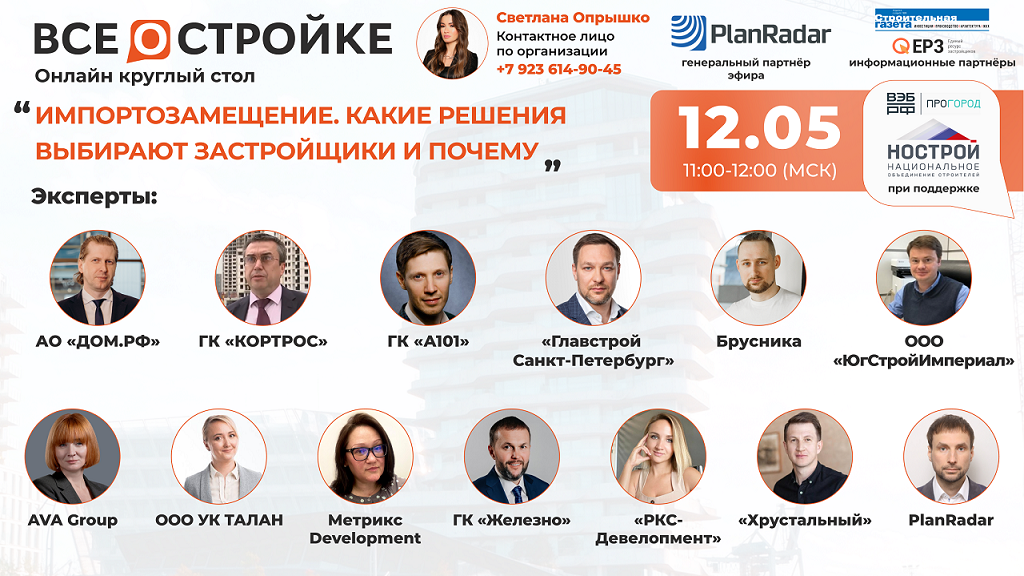 Круглый стол на тему: «Импортозамещение. Какие решения выбирают застройщики и почему» 12.05 в 11:00