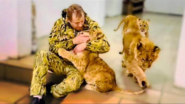 Самые первые минуты знакомства ТРЕХ ЛЬВЯТ! ШерХан еще боится Симбу и ищет поддержки у Олега Зубкова!