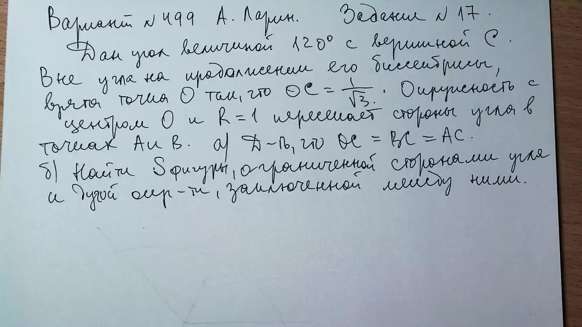Вариант № 499 А. Ларин. Задание №17. Планиметрическая задача.