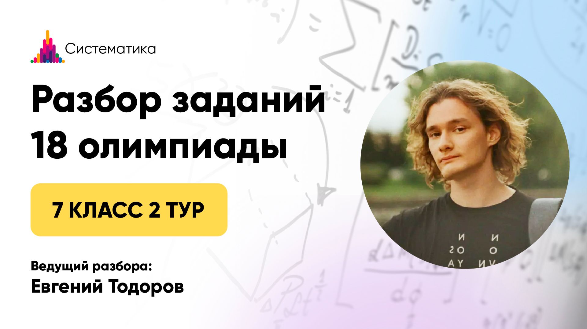 Разбор задач 2 тура 18 олимпиады по математике для 7 класса Записаться на очередную олимпиаду — https://systematika.org/olimpiada/math/ Онлайн-занятия в мини-группах По одному абонементу можно заниматься сразу в нескольких кружках. Олимпиадная математика для 1–9 классов — https://systematika.org/online-courses/live-math/ Шахматы для 1–9 классов — https://systematika.org/online-courses/chess/ ТРИЗ для 1–7 классов — https://systematika.org/online-courses/triz/ Биология для 3–7 классов — https://systematika.org/online-courses/biology/ Индивидуальные занятия Опытные преподаватели из лучших вузов России помогут достичь высоких результатов в обучении! Олимпиадная математика — https://systematika.org/online-courses/live-math-repetitor/ Школьная математика — https://systematika.org/online-courses/school-math-repetitor/ Шахматы — https://systematika.org/online-courses/chess-repetitor/ ТРИЗ — https://systematika.org/online-courses/triz-repetitor/ Биология — https://systematika.org/online-courses/biology-repetitor/ Химия — https://systematika.org/online-courses/chemistry-repetitor/ Физика — https://systematika.org/online-courses/physics-repetitor/ Курсы Выбирайте только те темы, которые интересны вам. Олимпиадная математика — https://systematika.org/items/matematika/ Программирование — https://systematika.org/items/programmirovanie/ Физика — https://systematika.org/items/fizika/ История — https://systematika.org/items/istoriya/ Шахматы — https://systematika.org/items/shahmaty/ Soft skills — https://systematika.org/items/soft-skills/ Более 150 курсов в записи и вживую на сайте — https://systematika.org/form/courses/